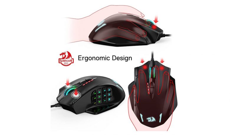 Redragon M908 Impact RGB LED MMO Maus mit Seitentasten, optische kabelgebundene Gaming-Maus mit 12.400DPI, hohe Präzision, 20 programmierbare Maustasten.